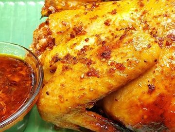 Onions, ginger, caramel fish sauce topping, fried garlic & onions.