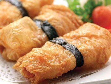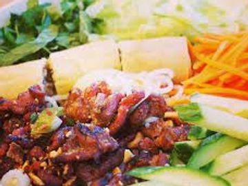 Served with peanut hoisin sauce or garlic lemon fish sauce mix with vegetables, noodles, fish cakes & egg rolls.