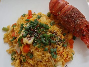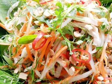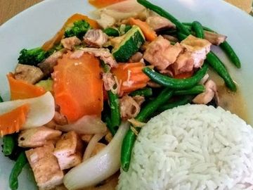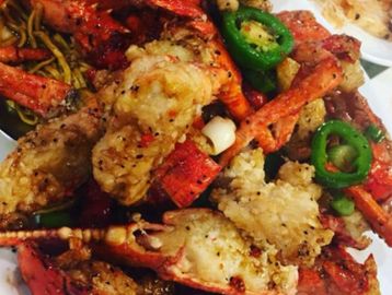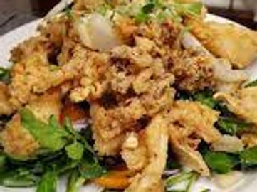 Served with peanut hoisin sauce or garlic lemon fish sauce mix with vegetables, noodles, fish cakes & egg rolls.