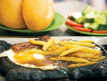 Onions, ginger, caramel fish sauce topping, fried garlic & onions.